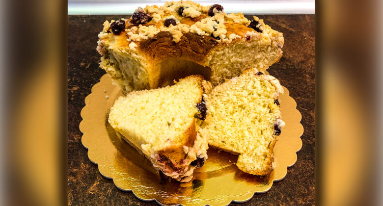Babka drożdżowa z wiśniami i kruszonką