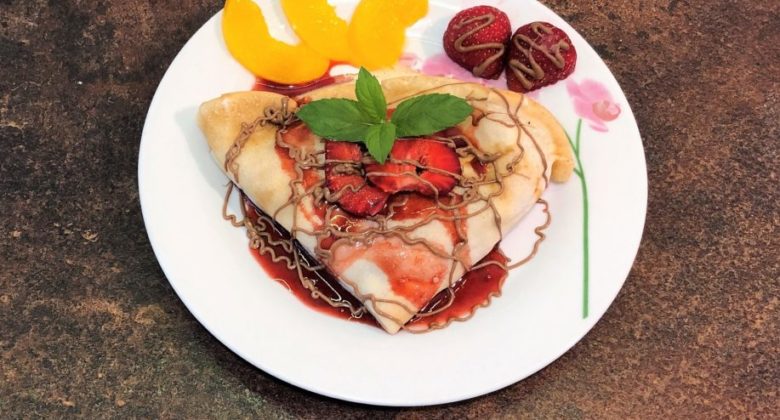 Naleśniki z owocami 🙂 trudno im się oprzeć. Wspaniałe na deser i słodki obiad, smakują dużym i małym a owoce możemy dodać takie, jakie lubimy. Ja przygotowuję je na dwa sposoby. Dla dużych robię sos na bazie nalewki truskawkowej a dla małych na bazie soku truskawkowego. Zapraszam.