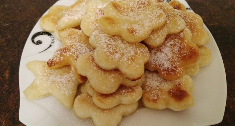 Drożdże posypujemy cukrem, mieszamy i odstawiamy do wyrośnięcia. Ziemniaki przeciskamy przez praskę na stolnicę i posypujemy mąką. Trochę mieszamy. Dodajemy drożdże, wodę i zagniatamy jak na pierogi. Formujemy kulę i odstawiamy żeby ciasto troszkę urosło (na około 15 min). Ciasto rozwałkowujemy na grubość ok. 3mm i wycinamy dowolne kształty. Dajemy placuszkom chwilę, żeby podrosły (ok. 5 min) i smażymy na rozgrzanym oleju. Gotowe posypujemy cukrem pudrem.