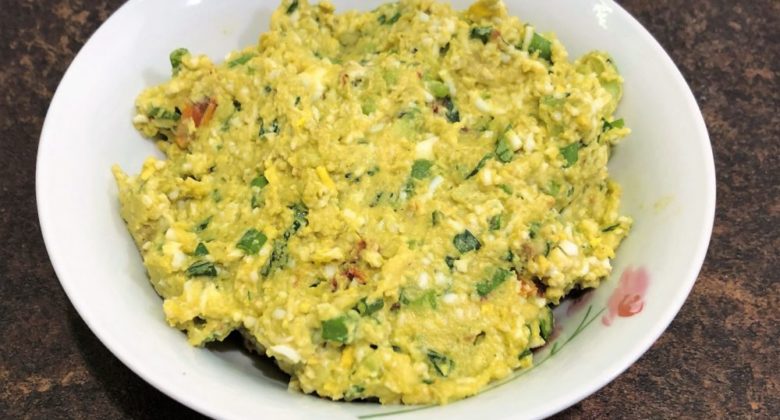 Jajka gotujemy na twardo. Studzimy, obieramy i ścieramy na drobnej tarce. Awokado kroimy na pół i wyjmujemy pestkę. Wydrążamy miąższ i przekładamy go do miseczki, rozgniatamy je widelcem. Szczypiorek i suszone pomidory drobno siekamy. Wszystkie składniki mieszamy ze sobą i doprawiamy solą i pieprzem. Podajemy z ulubionym pieczywem lub z krakersami.