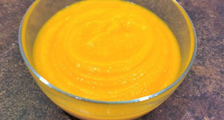 Dynię kroimy na mniejsze kawałki, wydrążamy środek, układamy na blachę i wkładamy do piekarnika. Pieczemy w 1800C przez ok 30-45min, aż dynia zmięknie i łatwo będzie wchodziła w nią wykałaczka. Po upieczeniu dynię oddzielamy od skóry, blendujemy i pulpa gotowa. Składamy do woreczków i możemy zamrozić lub przez kilka dni przechowywać w lodówce.