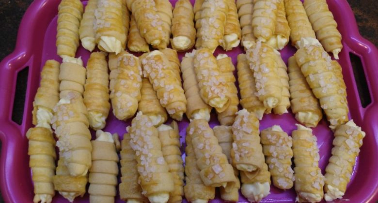 Pieczemy na złoty kolor ok. 20-25 minut. Przestudzone rurki nadziewamy kremem budyniowym.