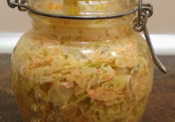 Tak przygotowaną surówkę składamy do słoiczków i wstawiamy do lodówki.