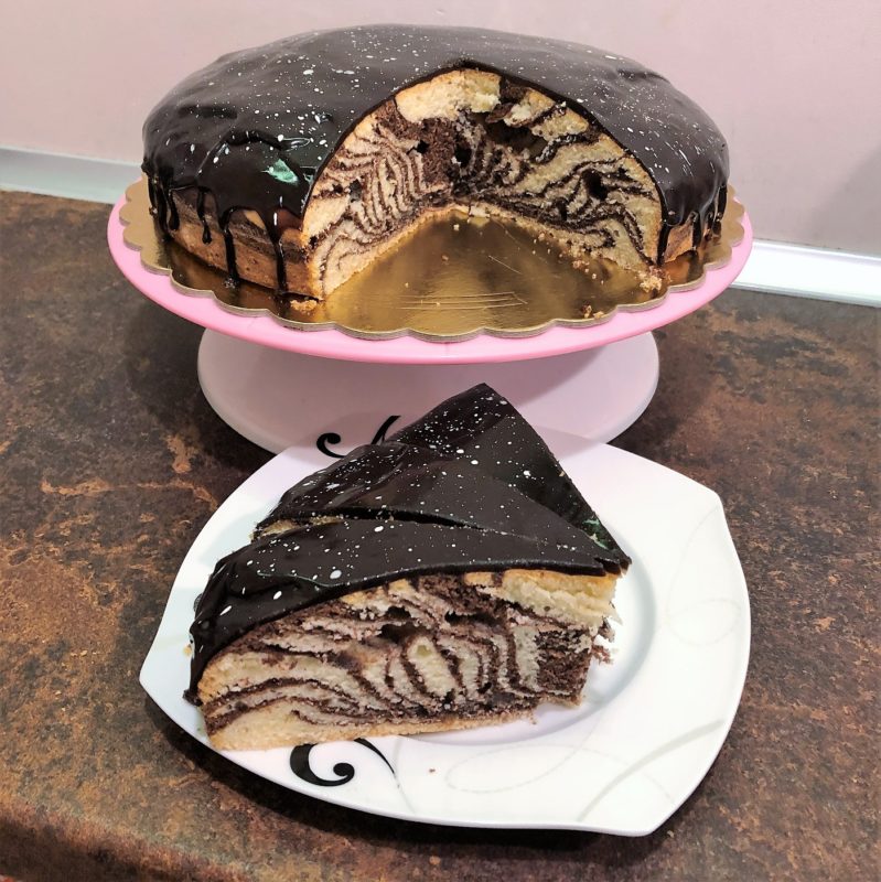 Wstawiamy do piekarnika i pieczemy w 1800C, funkcja góra/dół przez godzinę lub do suchego patyczka. Gotową zebrę wyjmujemy i studzimy.